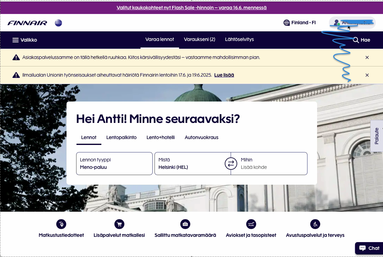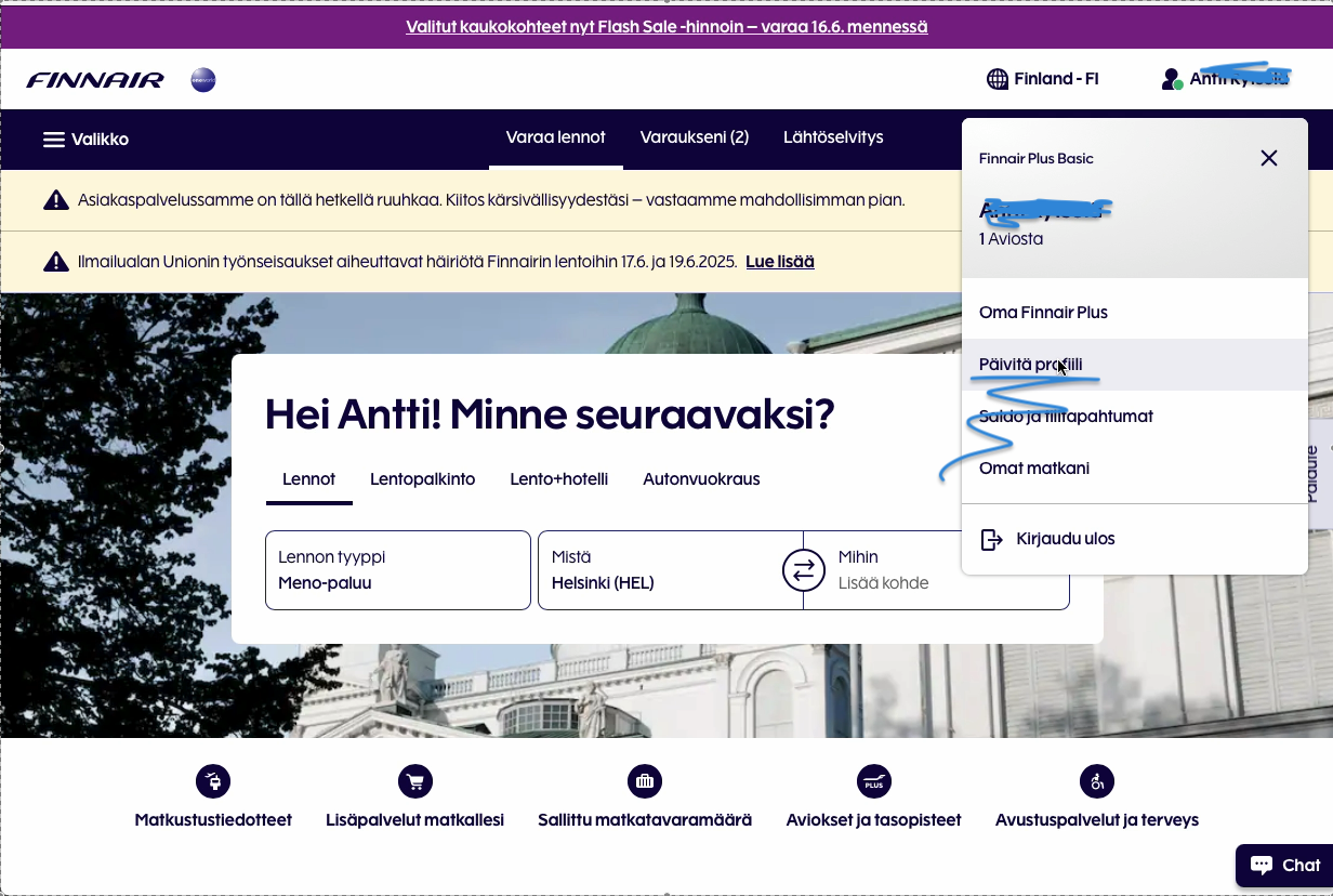 Kirjaudu Finnairin sivulle (avautuu uuteen ikkunaan)